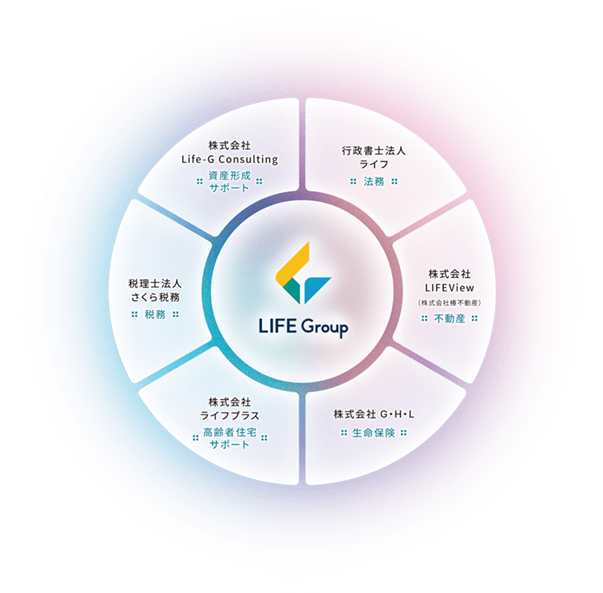 私たちライフグループは、「相続」「空き家」など超高齢社会における社会課題に向き合い、顧客やアライアンス企業と共に理想的な社会の実現を目指すグループ企業です。